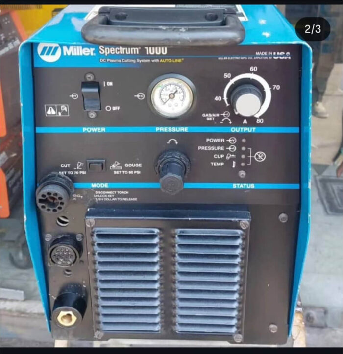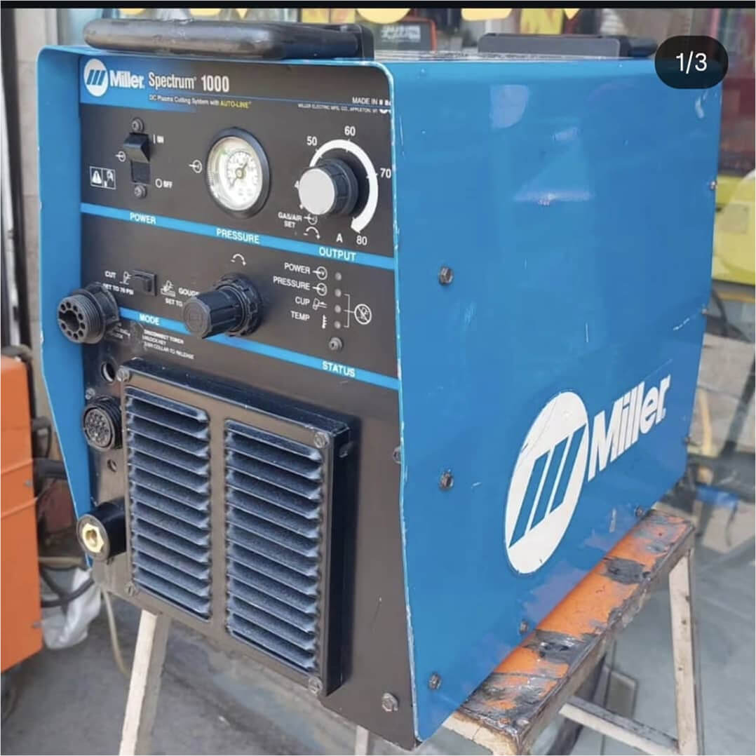 دستگاه برش پلاسمای میلر آمریکا مدل اسپکتروم ۱۰۰۰ (Miller Spectrum 1000) یکی از پیشرفتهترین و قدرتمندترین دستگاههای برش فلز در کلاس صنعتی است. این دستگاه با توان ۸۰ آمپر و سیستم خنککنندۀ هوا (Air Cooling)، برای برش دقیق، تمیز و سریع انواع فلزات مانند فولاد، استیل، آلومینیوم و مس طراحی شده است.